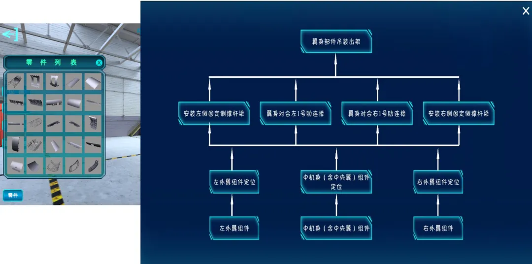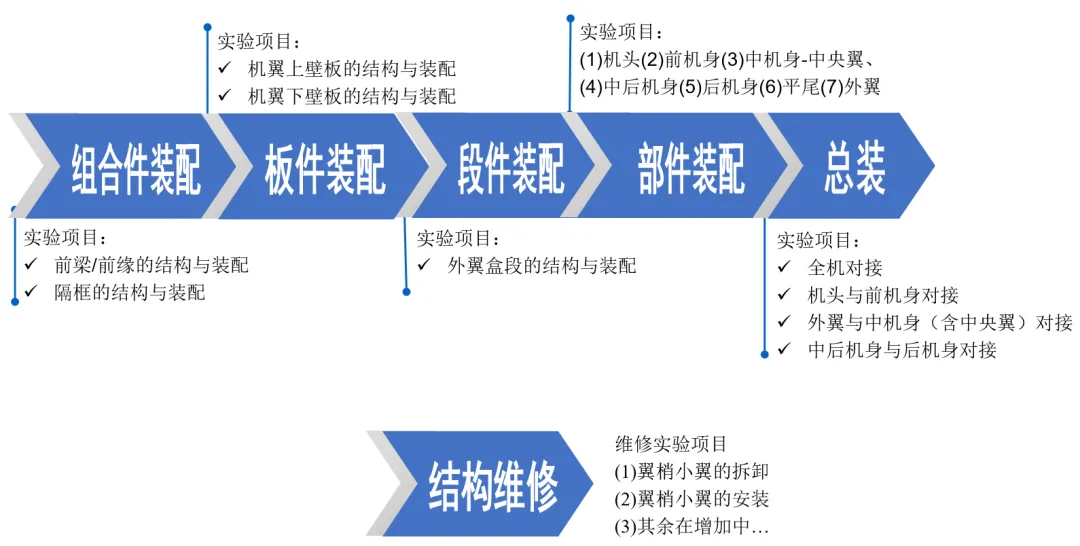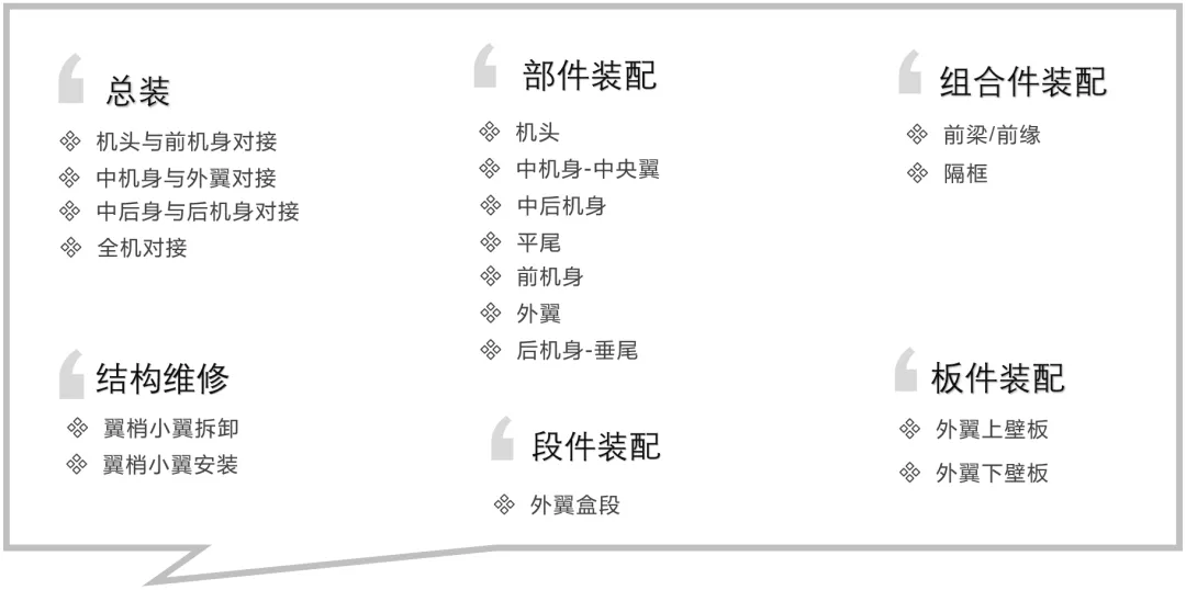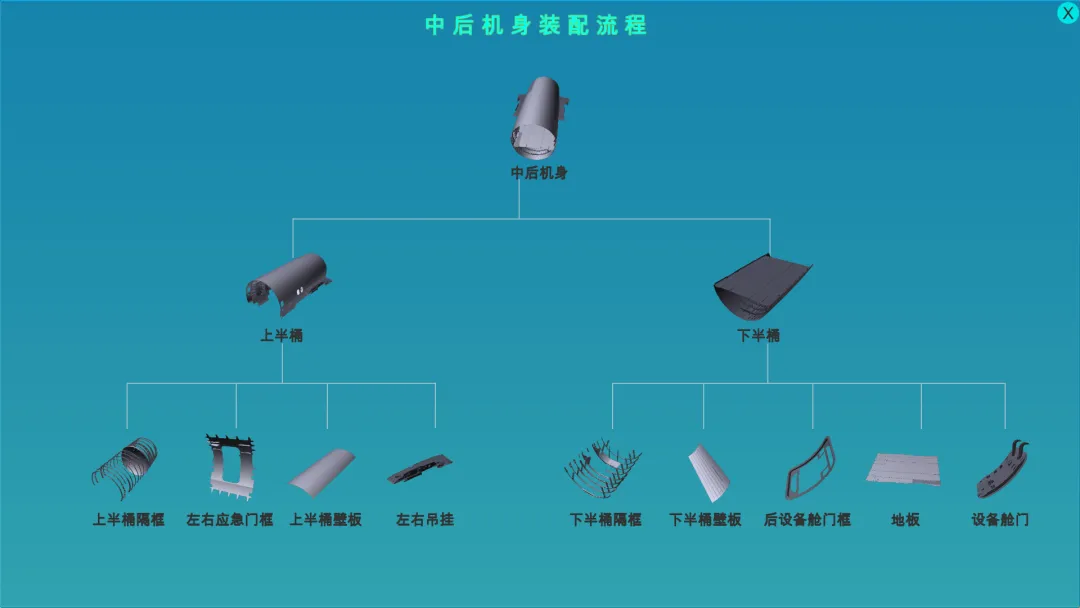 按组合件-板件-部件-大部件-总装顺序逐级装配(此处以中后机身装配为例)