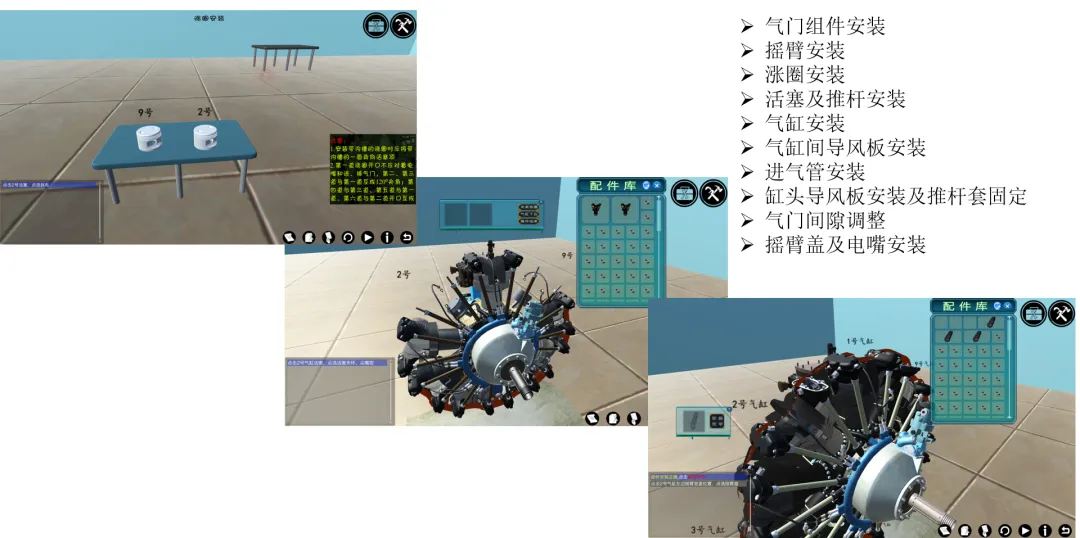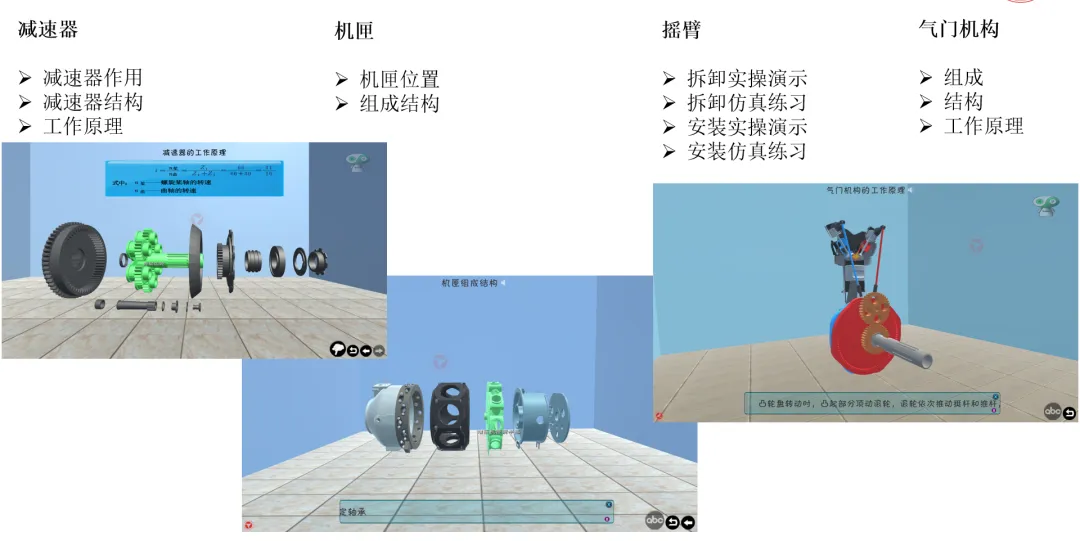 * 转化发动机结构图册和发动机维护技术说明书,实地完成对活塞发动详细的拆装过程和部件检测等过程内容的视频记录,经过分类、分析和整理后,再通过计算机仿真,实现从零件到整机的拆装全过程仿真。